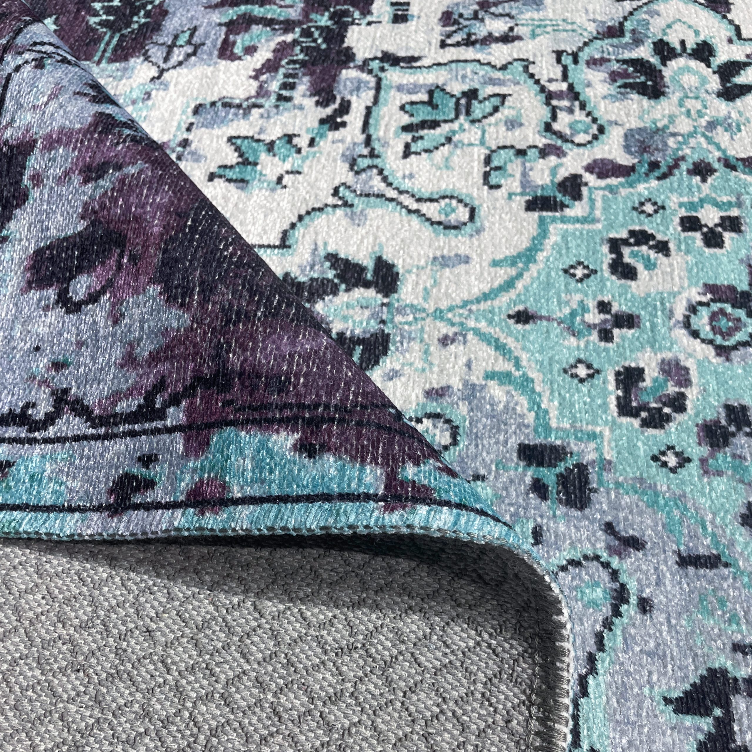 Gerçek dokuma halıdaki her bir düğüm özenle çizilerek, son teknoloji makinalar ile yumuşak ve dayanıklı pamuk, polyester dokuma kumaş üzerine baskı tekniği ile üretilmiştir. Katlanabilir, yer kaplamaz. Ürünümüz toz yapmaz, anti-alerjik özelliğe sahiptir. Bakımı ve temizliği kolaydır. 30 dereceye kadar suda sıktırma yapmadan yıkanabilir. Robot süpürgeler ile uyumludur. Tüm halılar pamuk ile dokunduğundan dolayı +/- %3 ölçü toleransına sahiptir. Monitörden kaynaklı ufak renk farklılıkları gözlemlenebilir. Ölçüler arasında ton farkı olması doğaldır. Ürünlerde en az %60 geri dönüştürülmüş pamuk ve oeko tex standartlarında boya kullanılmakta olup doğa dostudur.